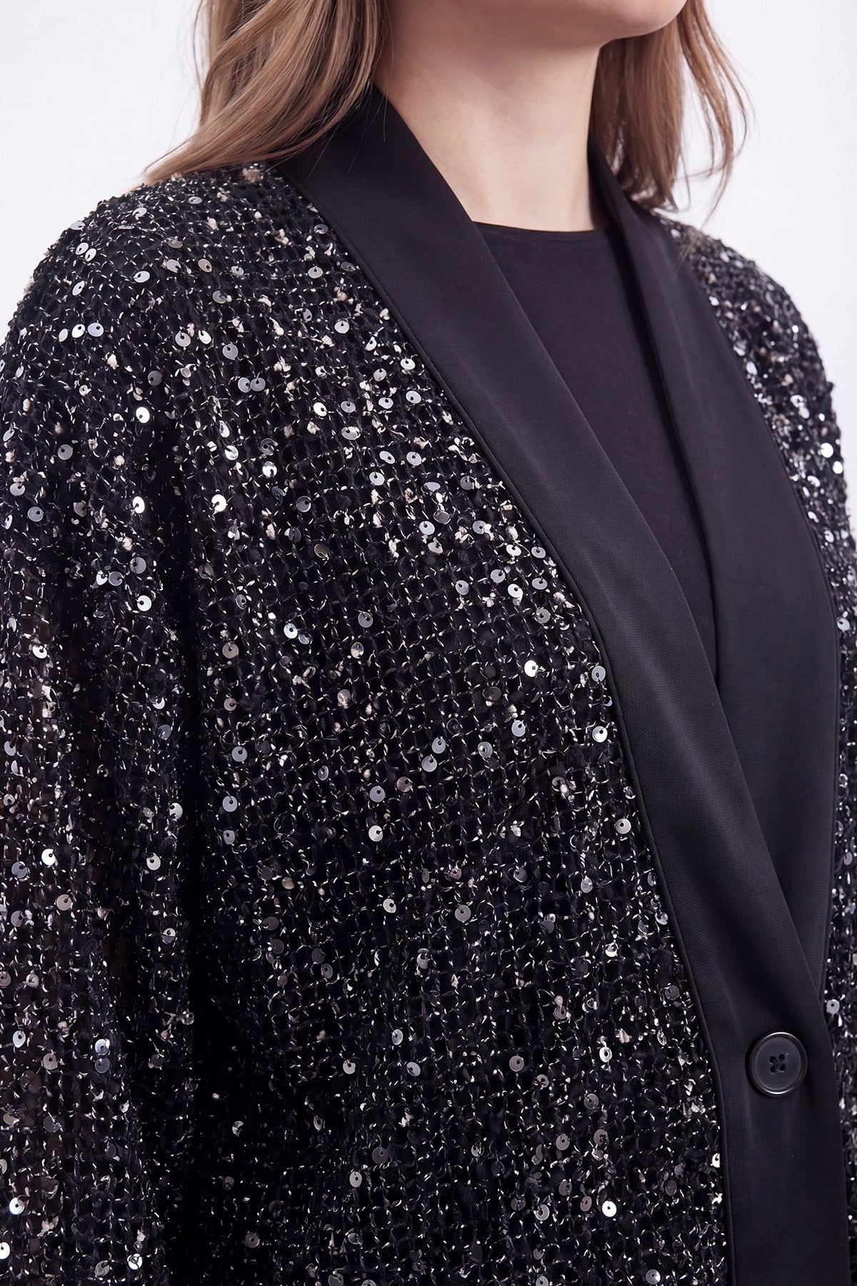 Kadın Payet Detaylı Şık Üçlü Takım -14483PNT - BLACK