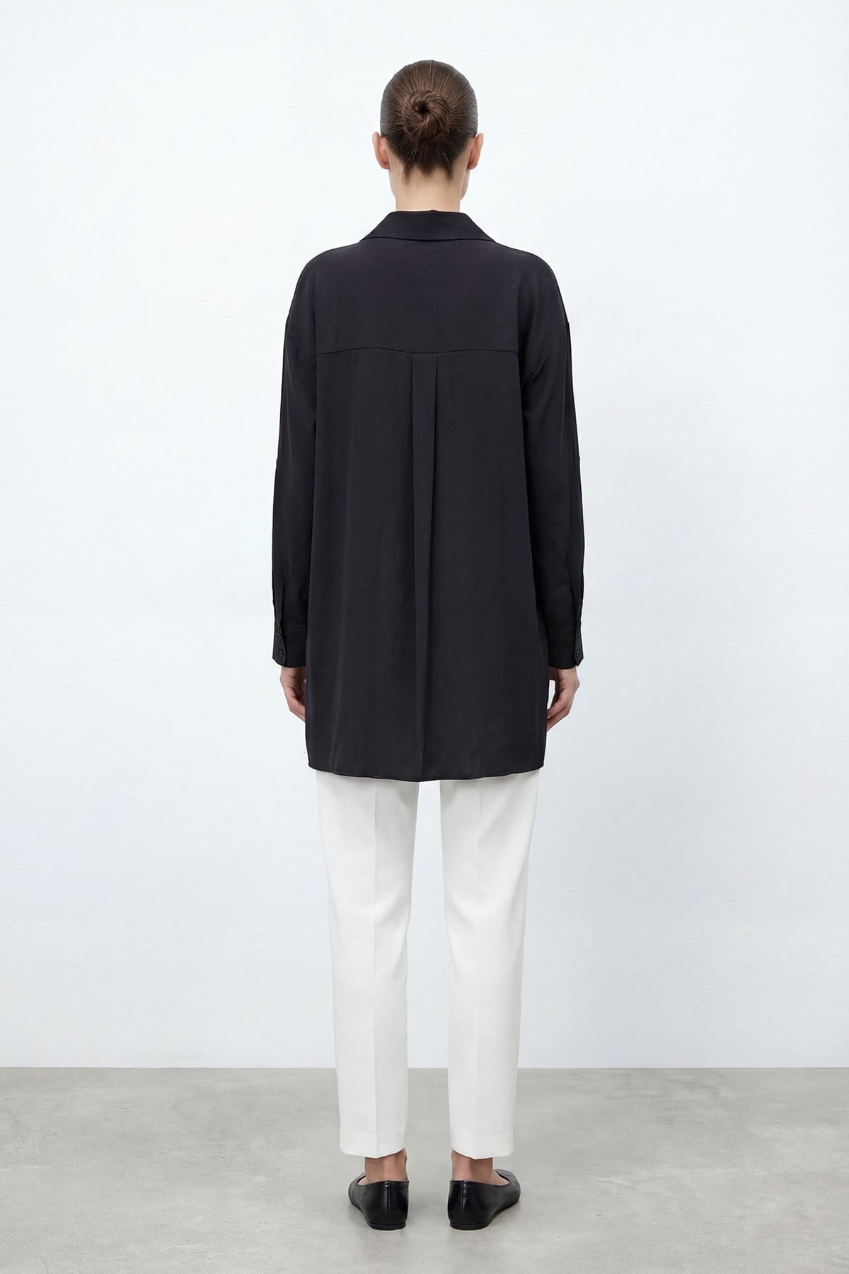 Kadın Taş Aksesuarlı Gömlek Yaka Tunik – 26S-10774TUN - BLACK