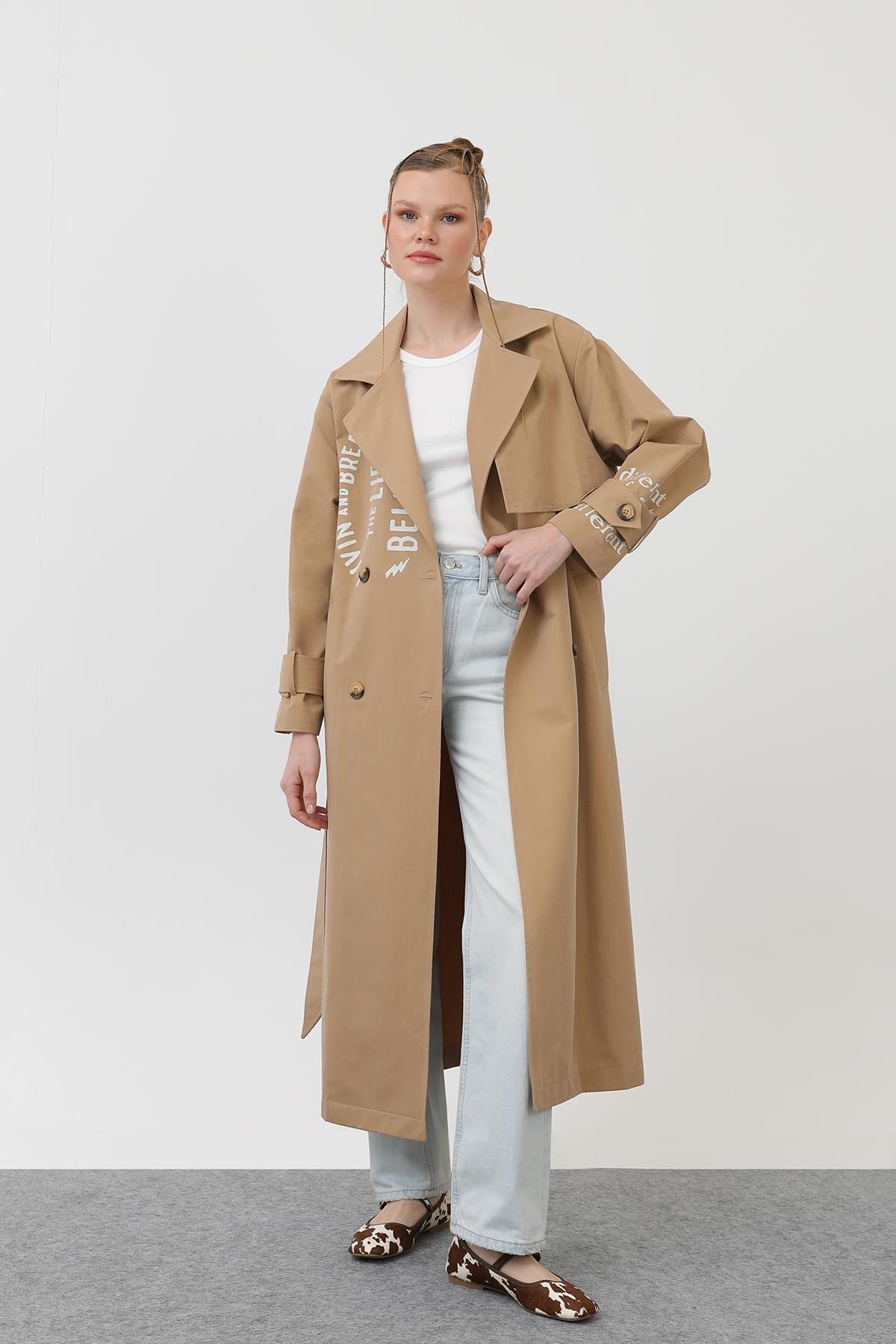 Kadın Baskılı Trench - 32139TRC - CAMEL