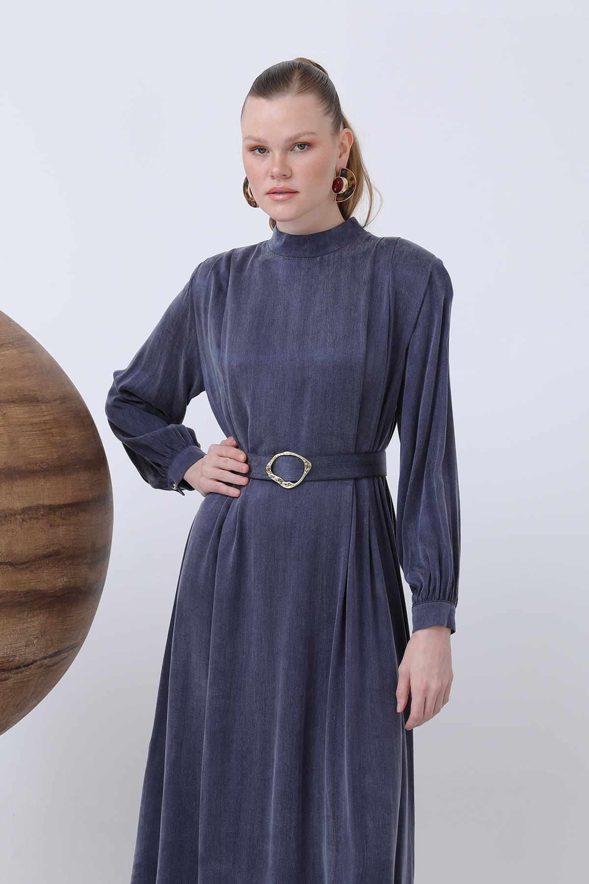 Kadın Kemer Ve Vatka Detaylı Elbise - 12598ELB - NAVY