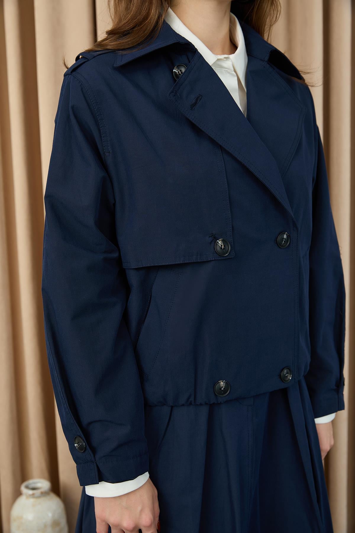 Kadın Apoletli Kısa Trençkot - 20701CKT - NAVY