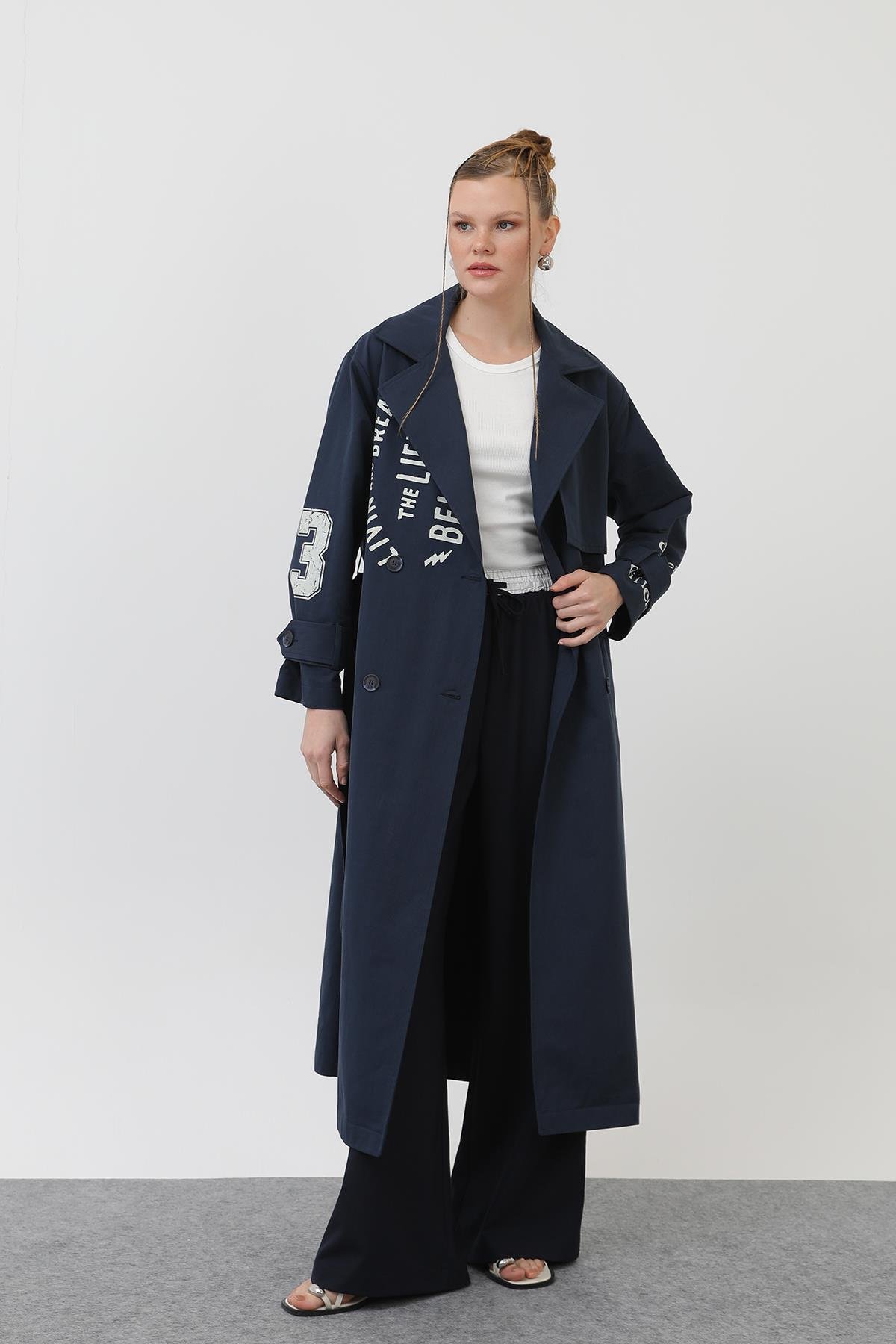 Kadın Baskılı Trench - 32139TRC - NAVY
