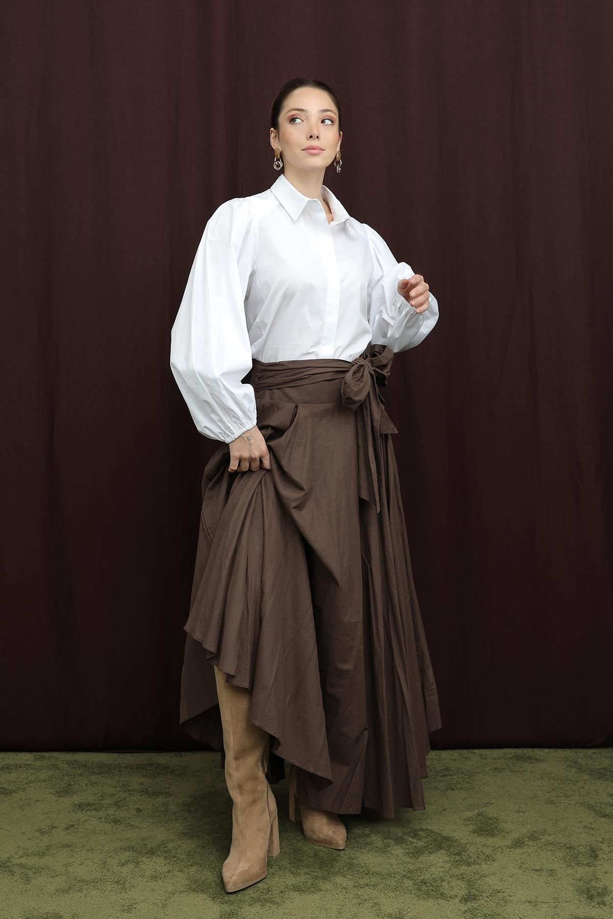 Kadın Bel Kuşaklı Asimetrik Kesim Etek  -  32420ETK - BROWN