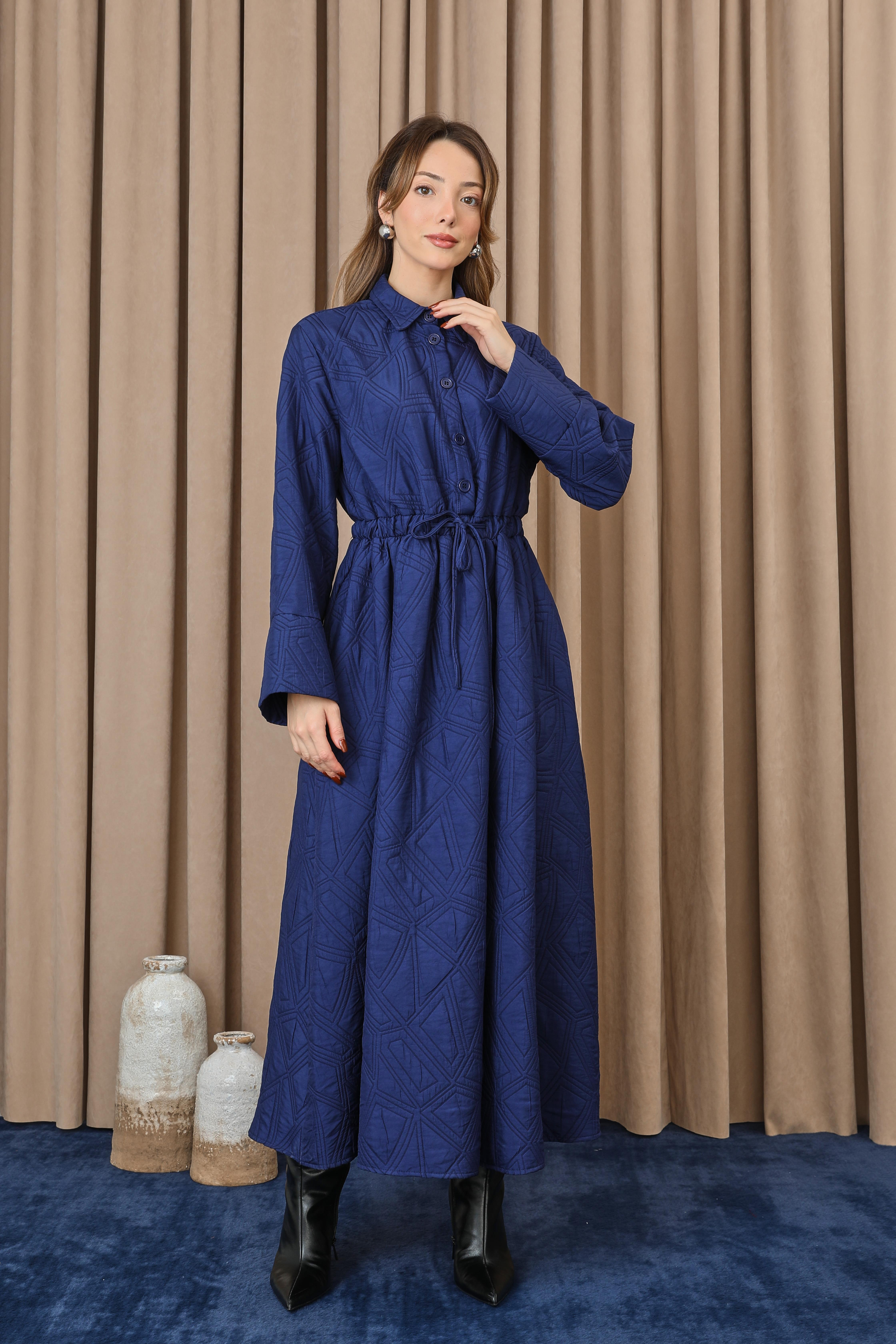 Kadın Belden Tünelli Kapitone Elbise - 20713ELB - NAVY
