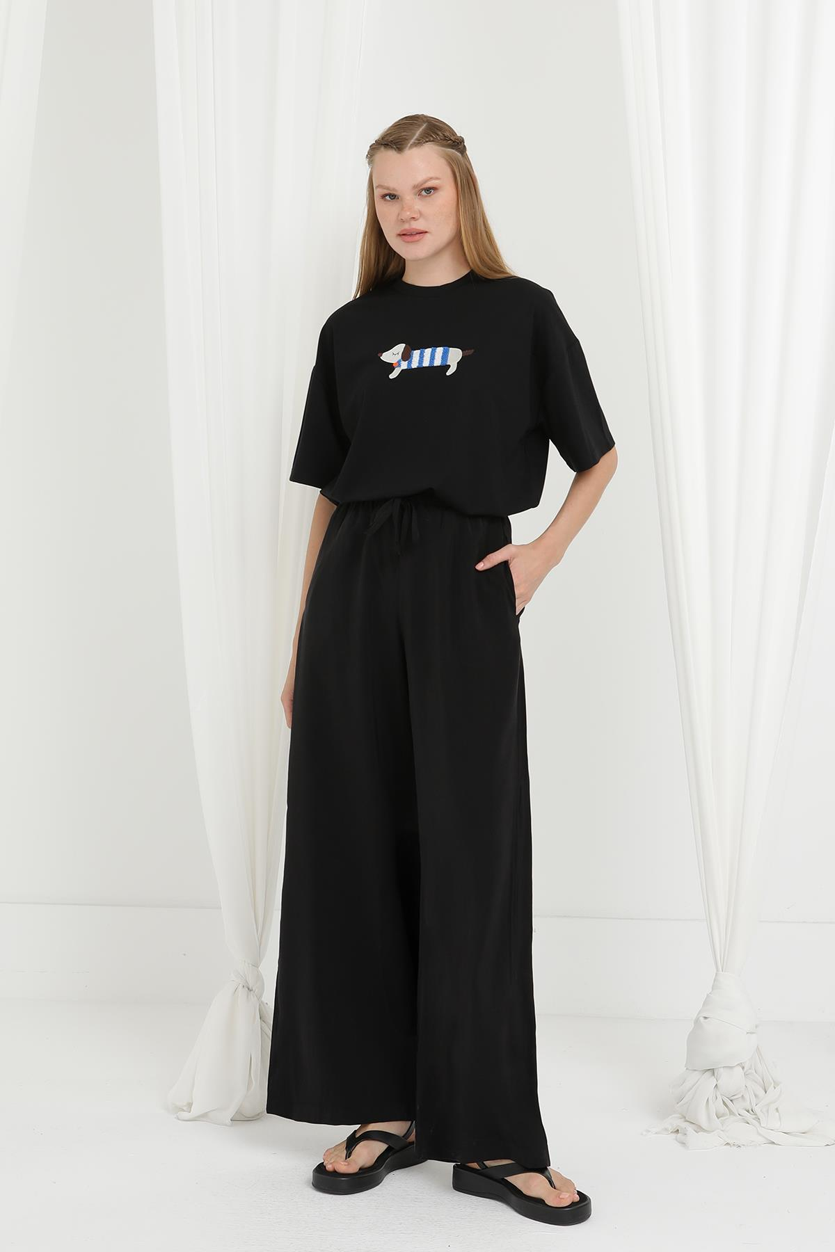 Kadın Beli Lastikli Bağlamalı Bol Pantolon - 20646PNT - BLACK