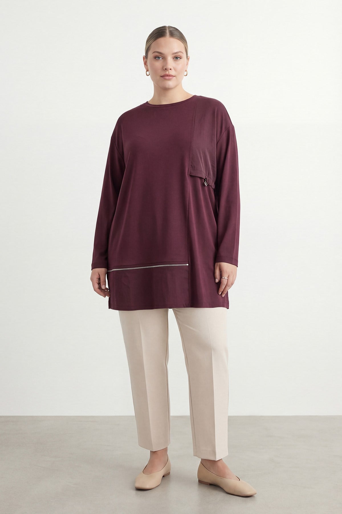 Kadın Büyük Beden Fermuar Detaylı Tunik – 19268TUN - BURGUNDY