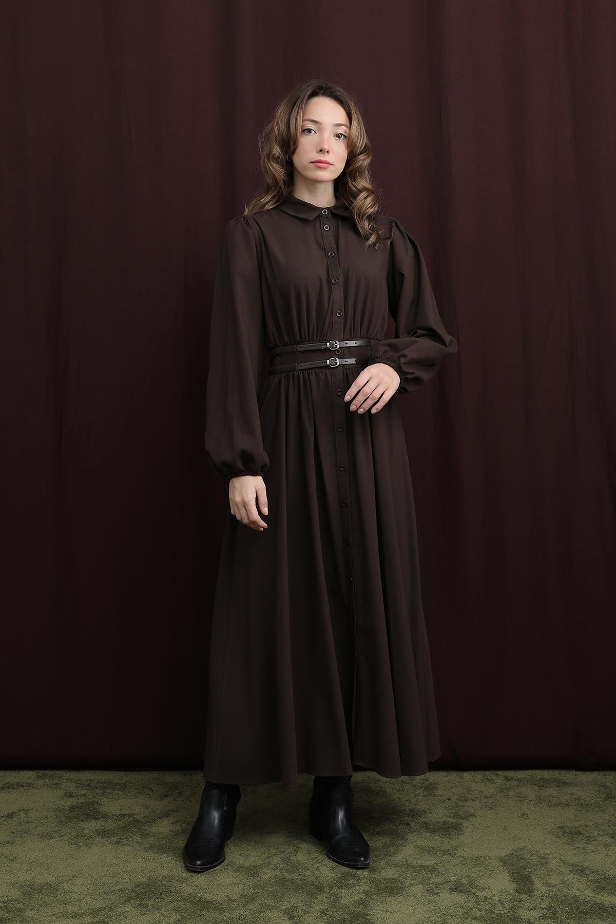 Kadın Çift Kemerli Elbise - 20700ELB - BROWN