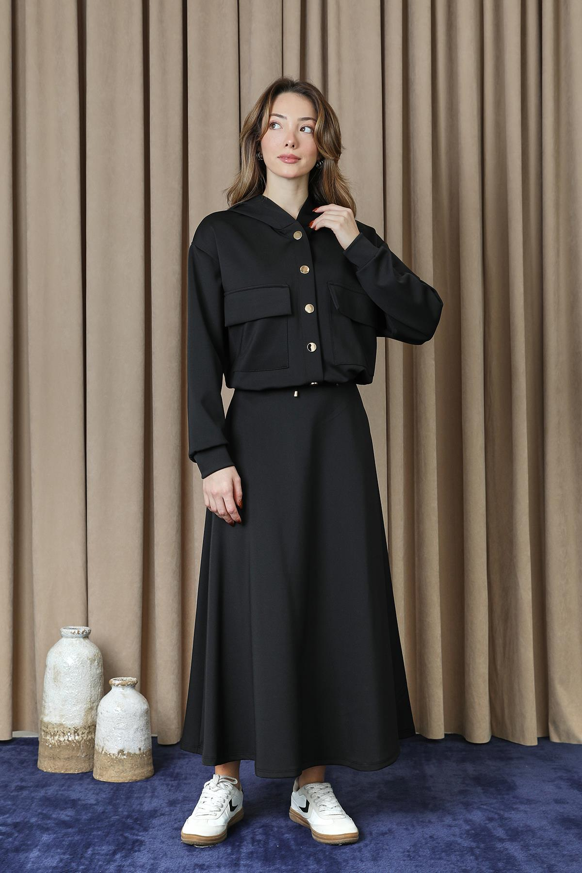 Kadın Çıtçıt Detaylı Etekli Takım - 14377TKS - BLACK