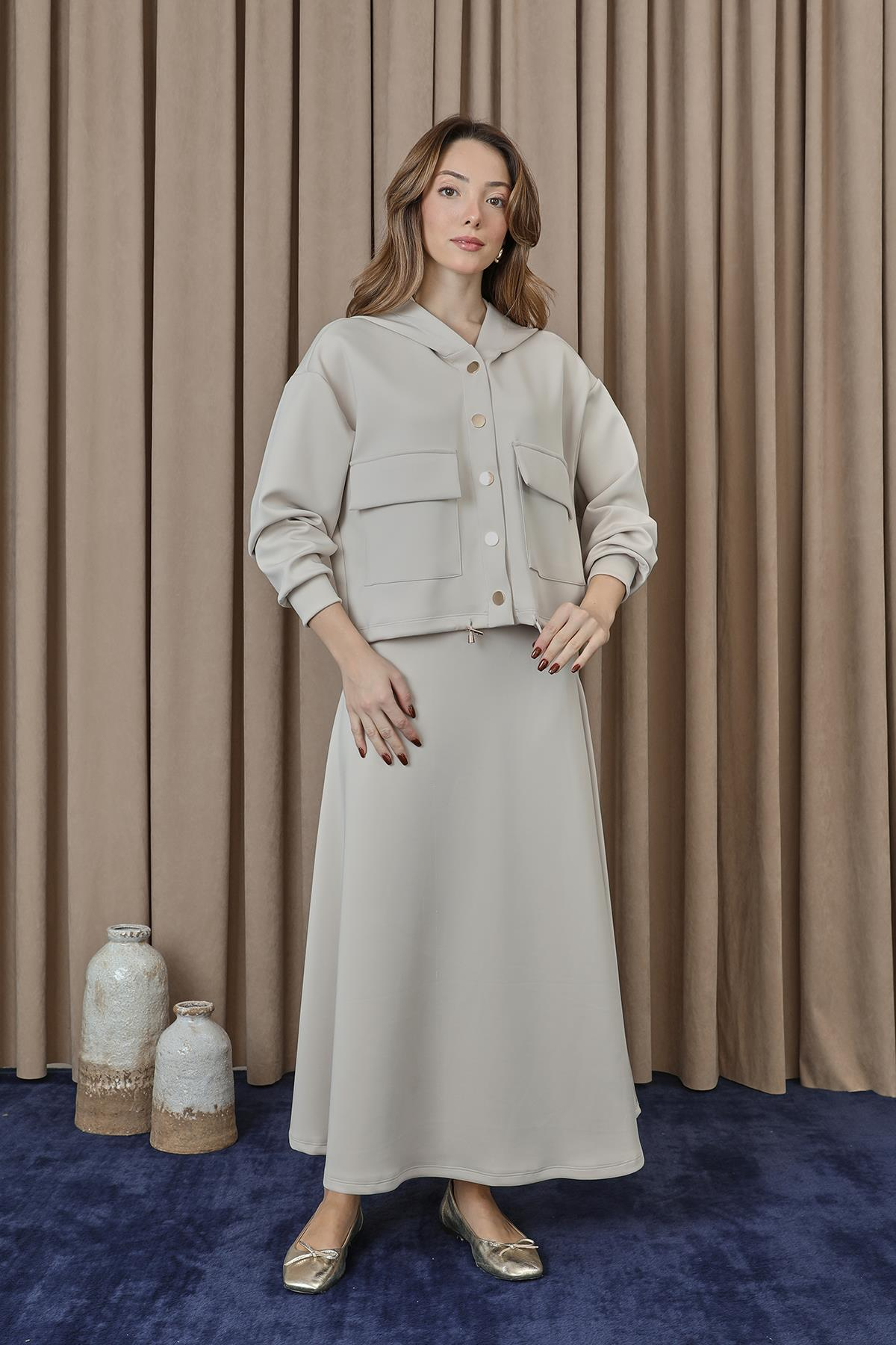 Kadın Çıtçıt Detaylı Etekli Takım - 14377TKS - STONE