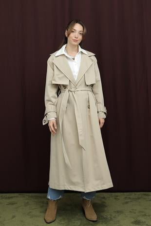 Kadın Düğme Detaylı Trench  -  32390TRC - STONE