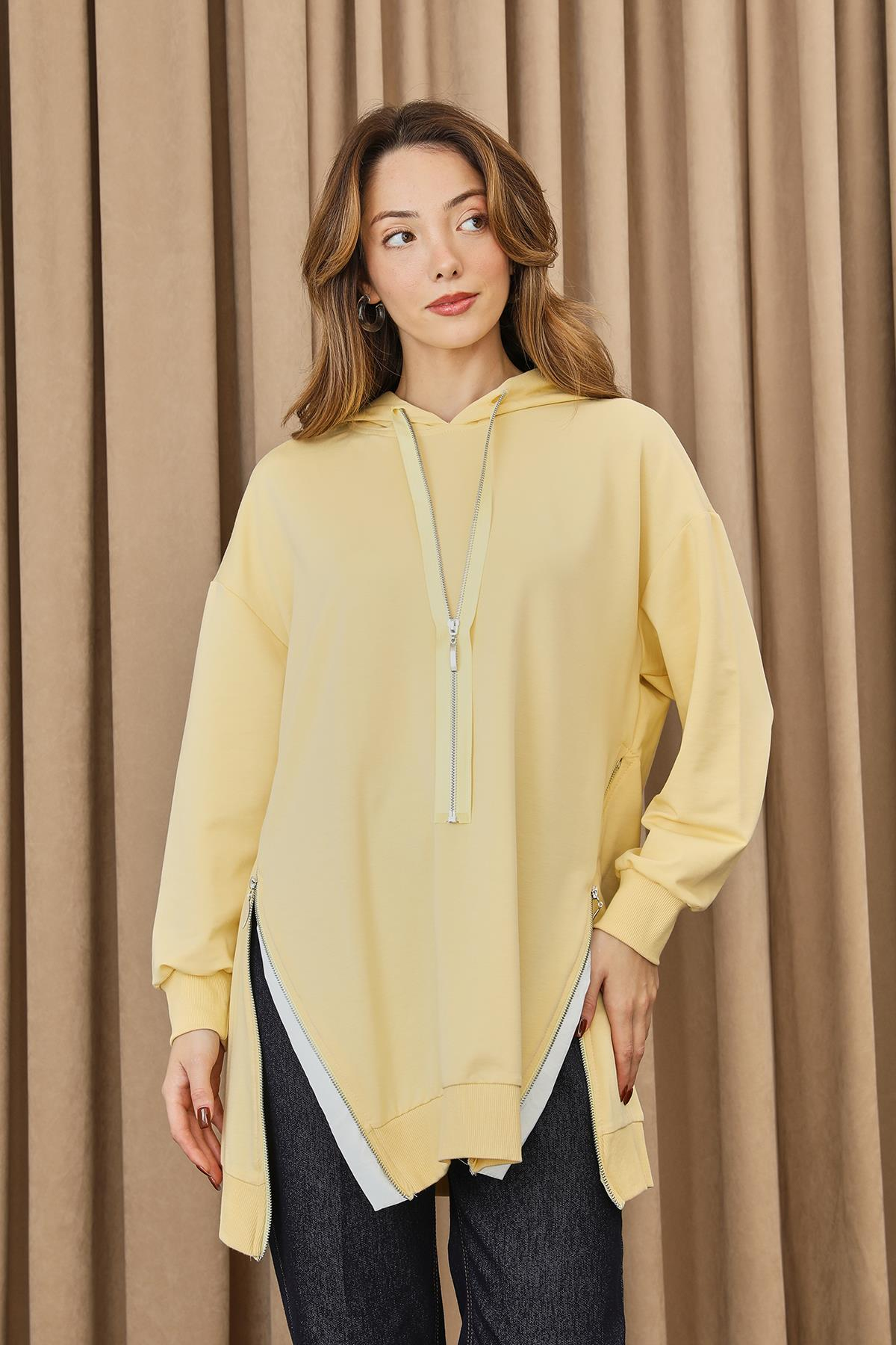 Kadın Fermuar Detaylı Tunik - 10731TUN - YELLOW-ECRU