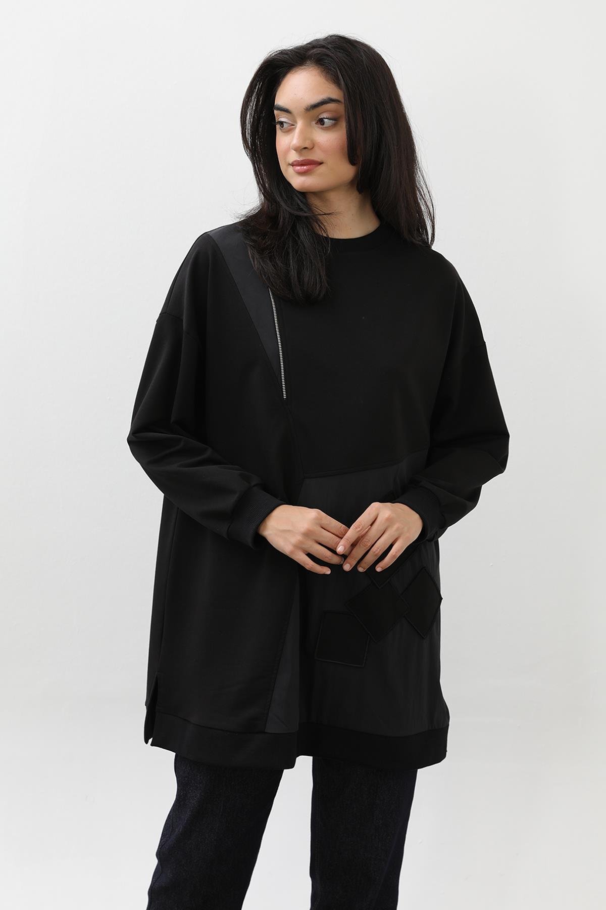 Açıklama : Fermuar ve aplike detaylarıyla hareket kazanan bu tunik, modern ve özgün tasarımıyla dikkat çeker. Rahat kalıbı sayesinde gün boyu konfor sunarken, şık duruşuyla her tarza uyum sağlar.