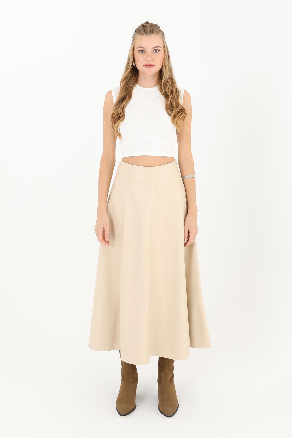 Kadın Fermuarlı Deri Etek  - 18203ETK - BEIGE
