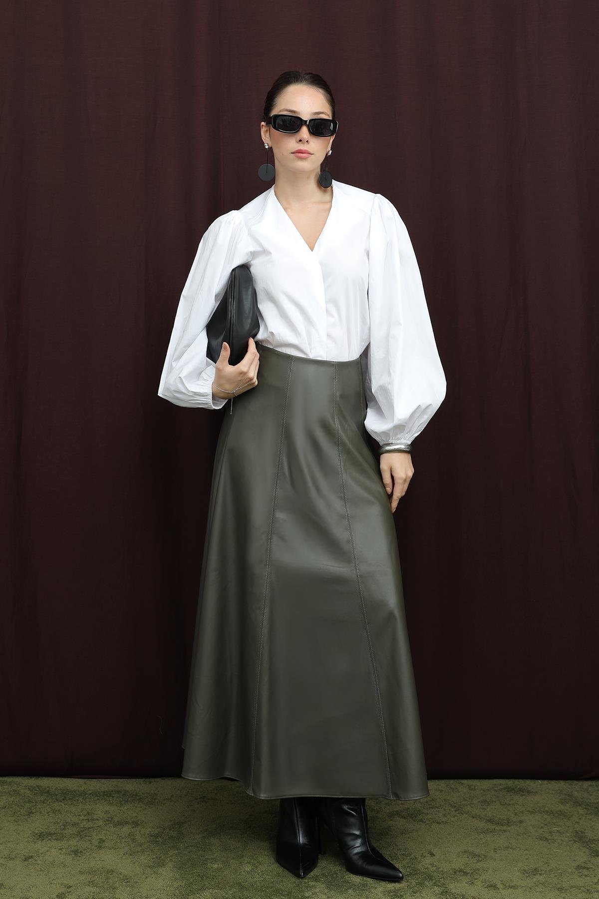 Kadın Fermuarlı Deri Etek  - 18203ETK - KHAKI