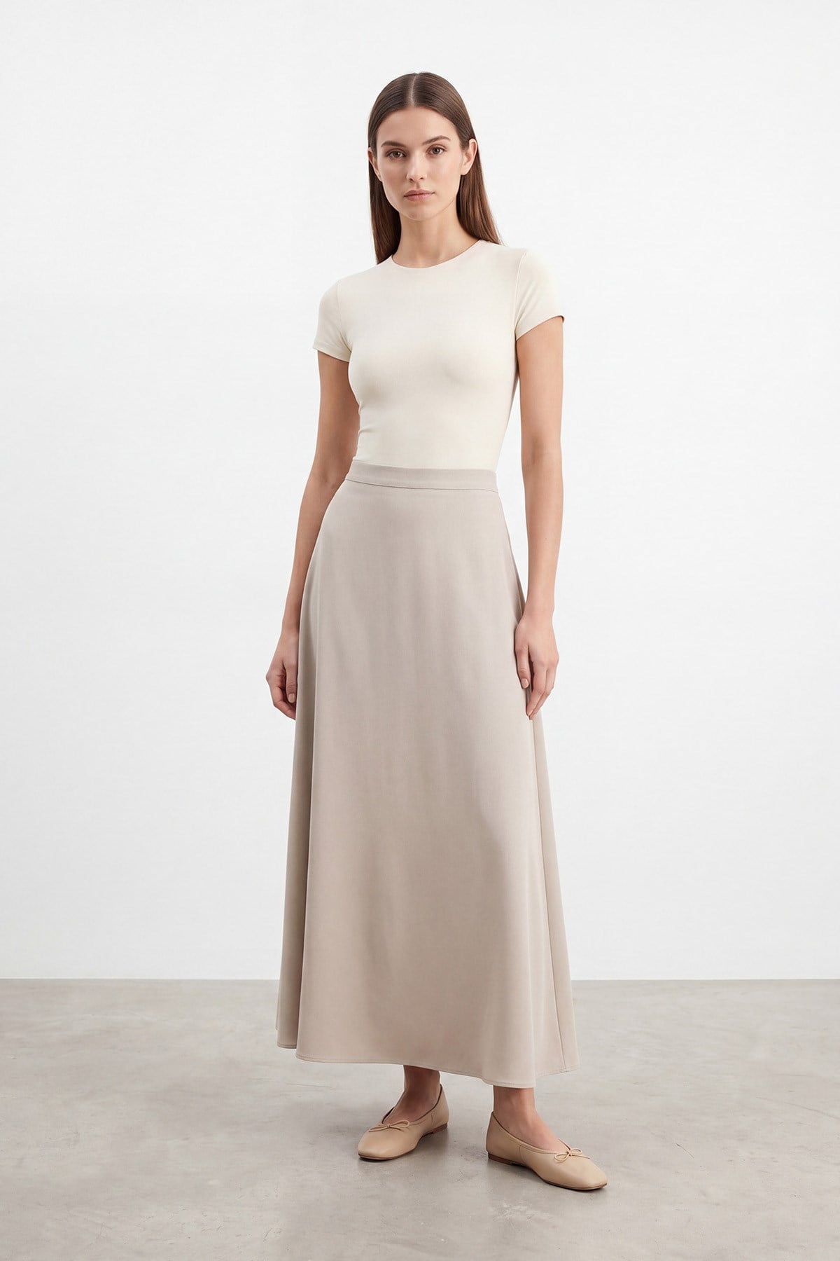 Kadın Gizli Fermuarlı Açılmlı Etek - 18264ETK - STONE