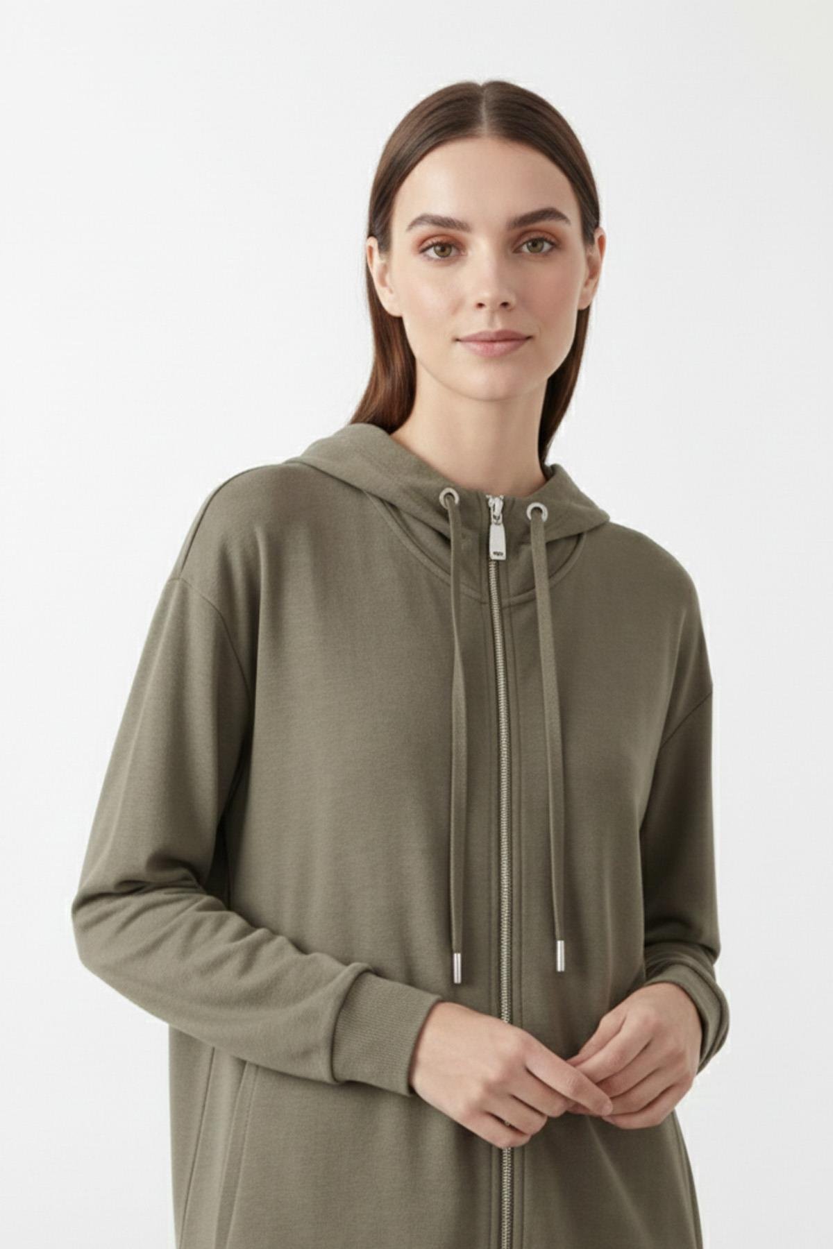 Kadın Kapüşonlu Fermuarlı Tunik Pantolon Takımı-14427 - KHAKI