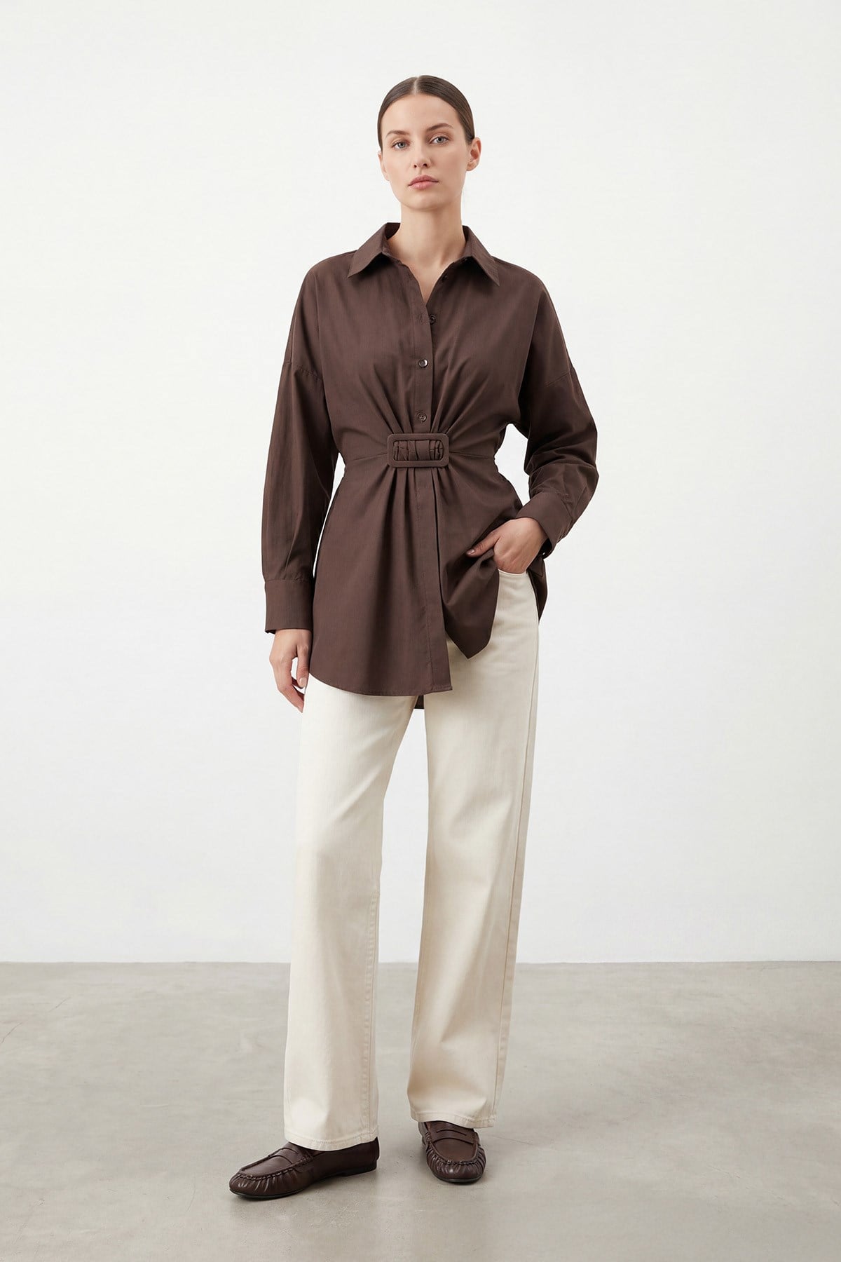 Kadın Kemer Detaylı Kuşaklı Gömlek – 20761GML - BROWN