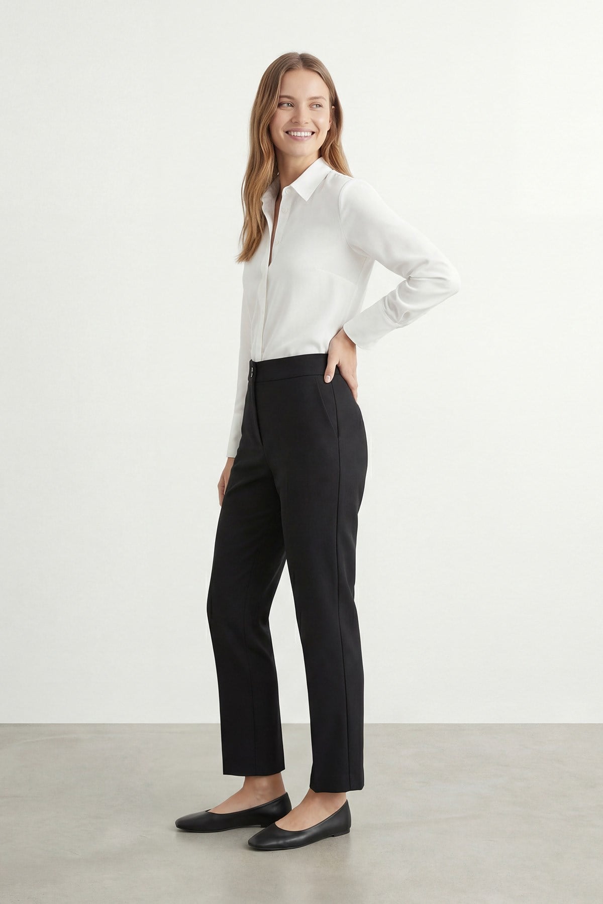 Kadın Klasik Kesim Yüksek Bel Kumaş Pantolon-M1819PNT - BLACK
