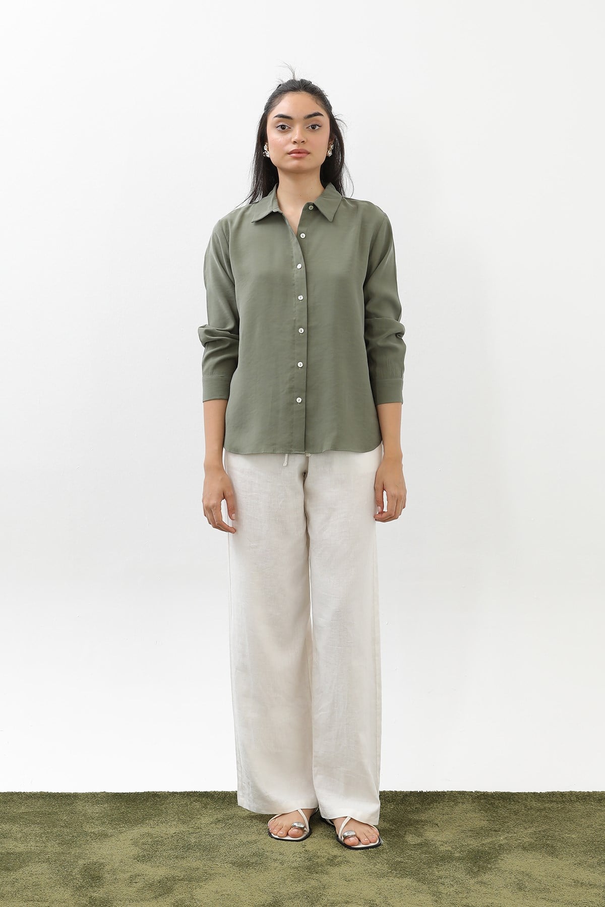 Kadın Sedef Düğmeli Kısa Gömlek -20647GML - KHAKI