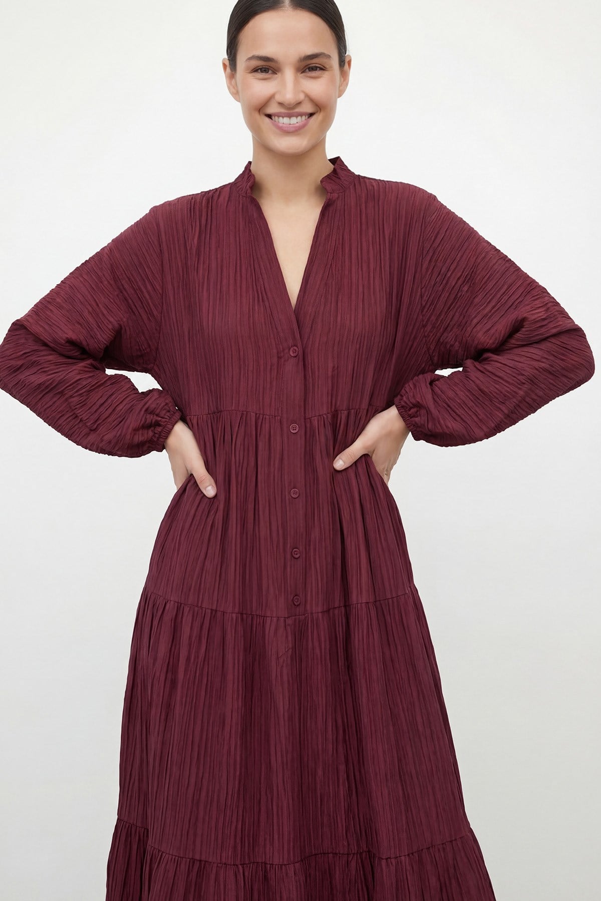 Kadın V Yaka Katlı  Elbise – 32461ELB - NAVY Kadın V Yaka Katlı  Elbise – 32461ELB - MINK Kadın V Yaka Katlı  Elbise – 32461ELB - BROWN Kadın V Yaka Katlı  Elbise – 32461ELB - DAMSON Kadın V Yaka Katlı  Elbise – 32461ELB - BLACK