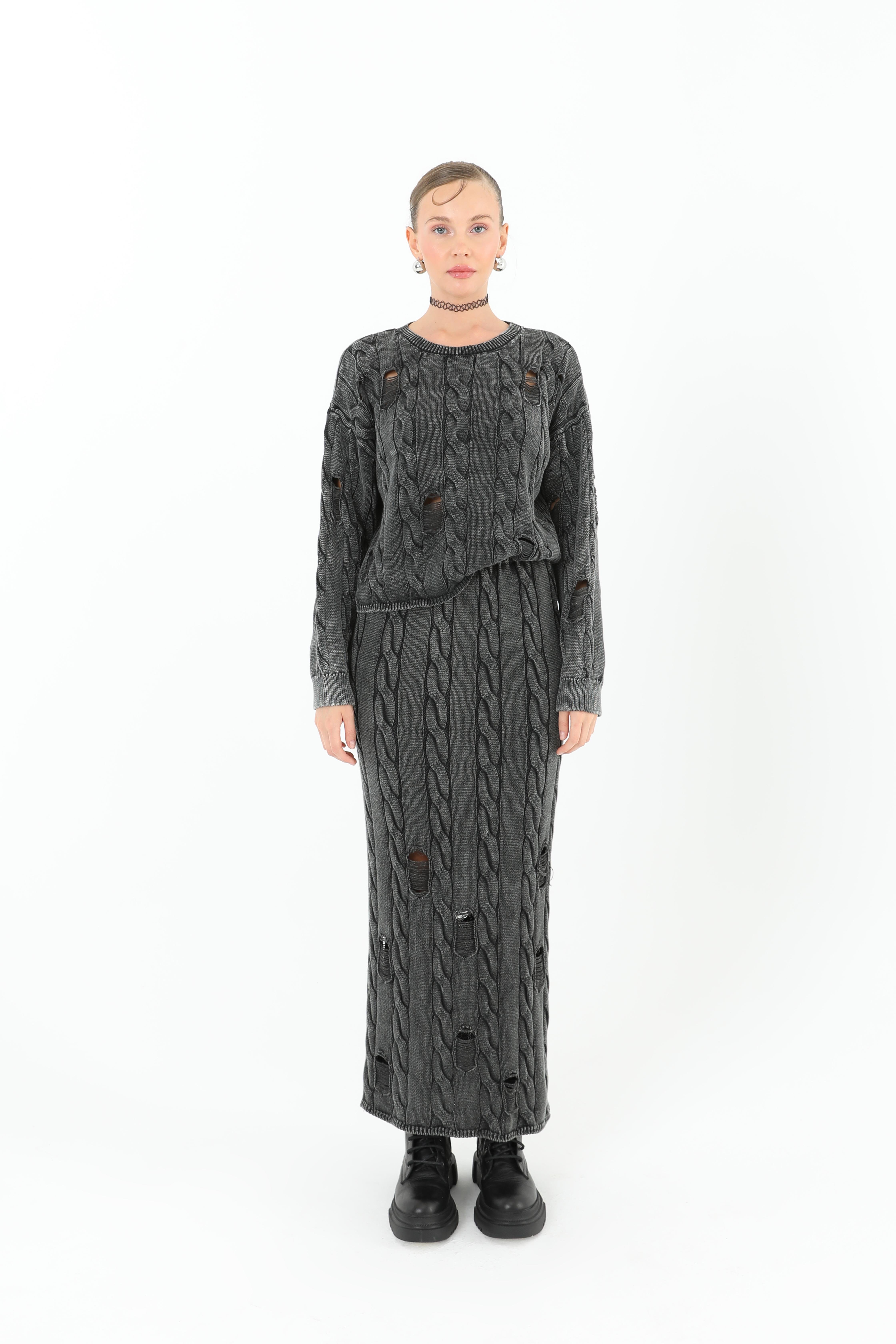 Triko Uzun Kollu Kazak  - 32031BLZ - ANTRACITE